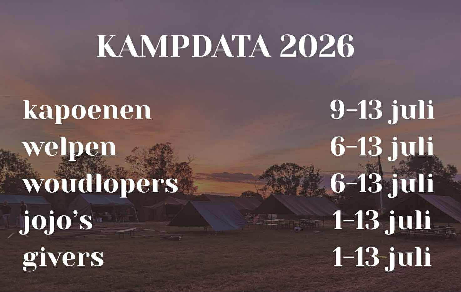 De kampdata voor dit jaar zijn bekend. Zet deze dus zeker in jullie agenda!